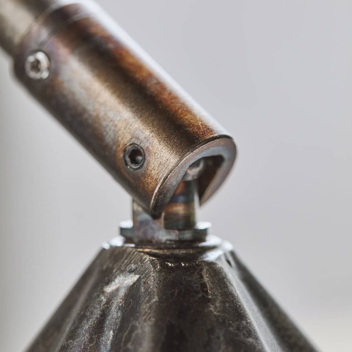 Merveilleux exemple d’imperfection délibérée, la surface a reçu une finition industrielle adoucie par la forme ondulée et fluide de l’abat-jour.
